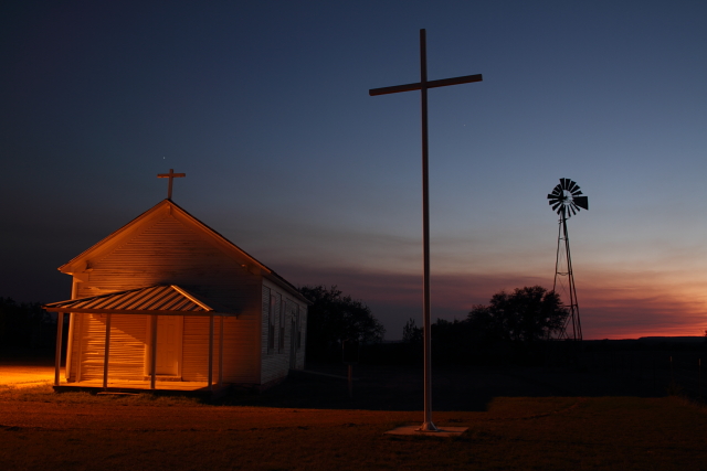 Church at dusk – another splendid paintjob by Wyman Meinzer.
