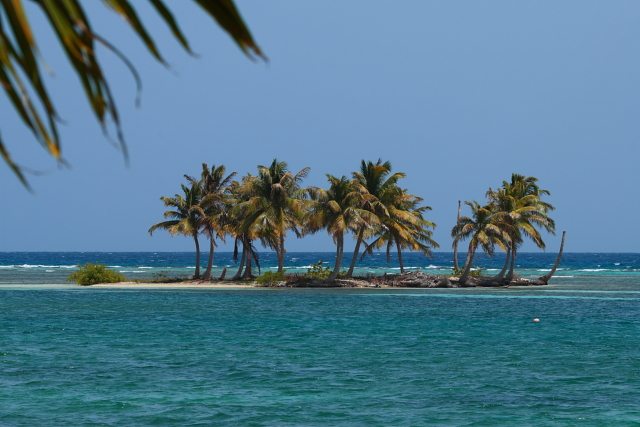 The view from our hut (10.5′ x 10.5′) when we lived on an atoll, 30 miles offshore Belize.
