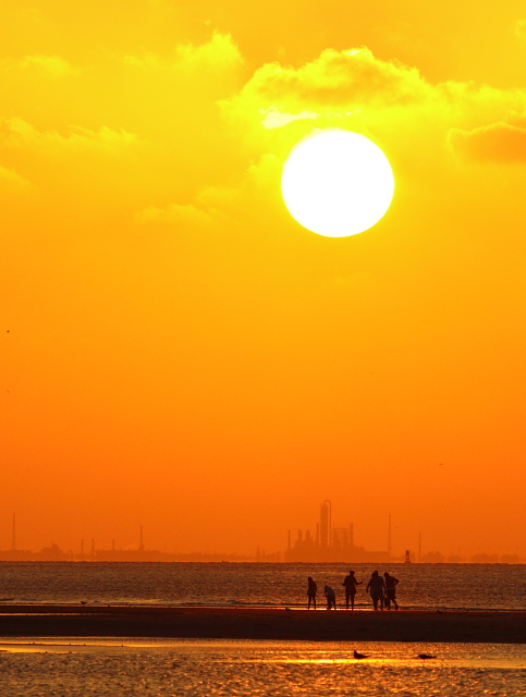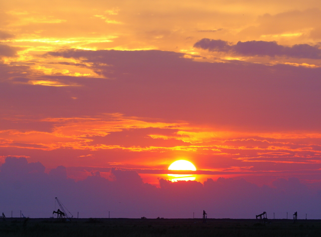 Sunset over the refineries of Texas City. Shot from the east end of Galveston Island.