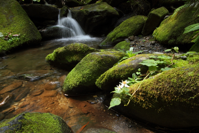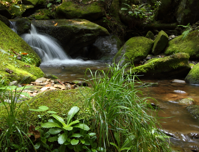Mossy boulders and stream. Canon 7D with Canon EF-S 10-22mm f/3.5-4.5 lens at ISO 400.