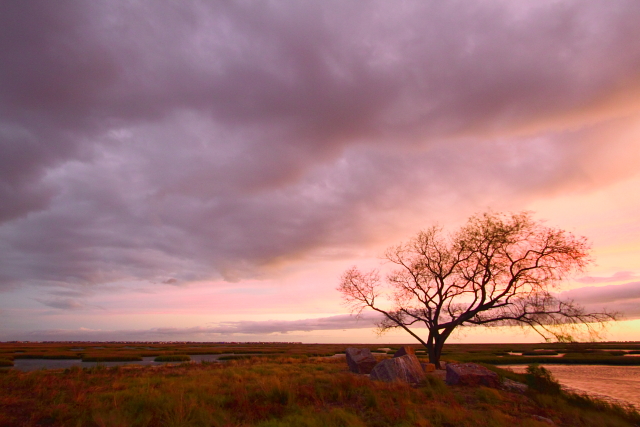 Rain over the salt-marsh. Canon 7D with Canon EF-S 10-22mm f/3.5-4.5 lens at ISO 1000 (the wind was absolutely howling, very nearly blowing the tripod, and me, over).