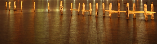 "Shadow Paining." Canon 7D with Canon 10-22mm f3.5-4.5 lens. f6.3 for 30 seconds at ISO 200. This image is a light painting of the pilings and the refinery lights created these appealing shadows/patterns.
