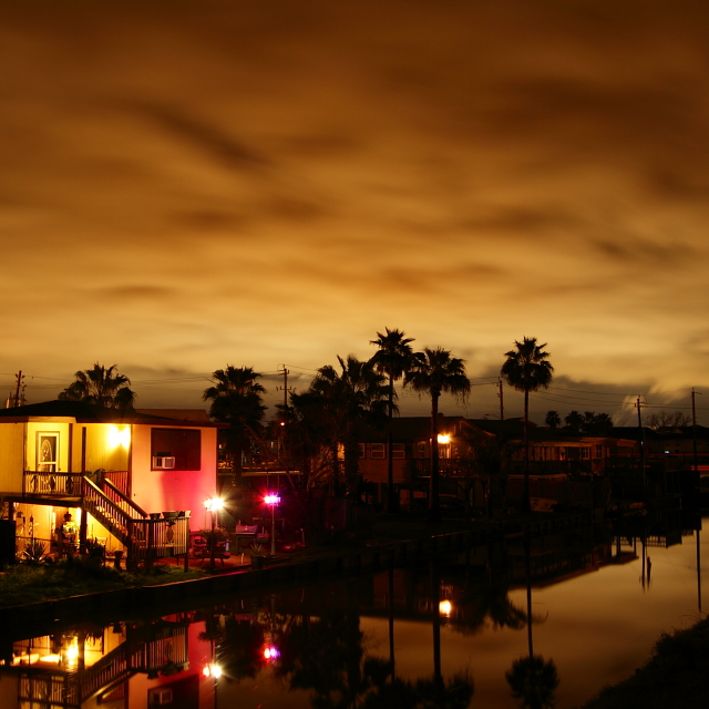 The view from our back deck/porch - it seems it hasn't been calm for months. The glow on the clouds is a result of Texas City petrochemical plants - thankfully we are located upwind of this.