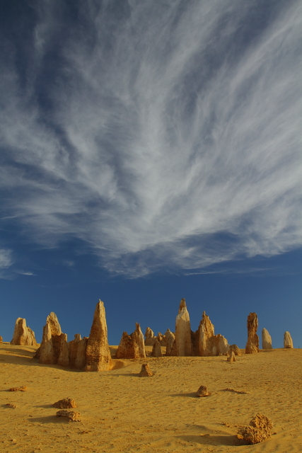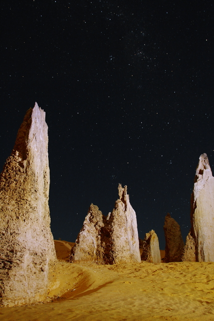 First, here are a few images of limestone pillars known as the Pinnacles Desert in Nambung National Park, near Cervantes, Western Australia. These spires exist up to 3.5m tall (11.5 feet). We were forunate to experience these fascinating structures in conjunction with a simple yet glorious sunset.