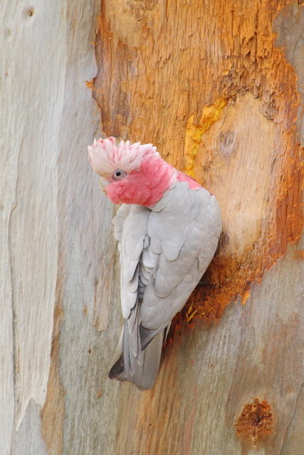 A Galah chew and rub spot on sugar gum (Eucalyptus cladocalyx). This particular tree is one of over 300 comprising a tree-lined avenue in Kings Park, planted to honour Australian service personnel who died in the two World Wars and other engagements.