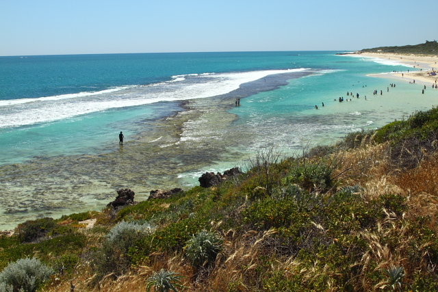 Up the road a little is a beautiful “terrace” beach at Yanchep, parts of which are sheltered by a reef which is delightfully overwashed. The image below shows this reef and placid waters immediately shoreward – we commented immediately that this is a wonderful spot for children to explore, enjoy, and hopefully be moved to curiosity.
