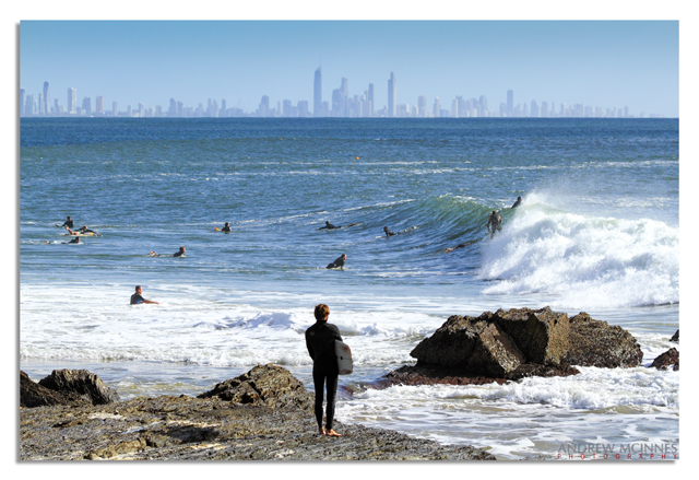 Published June 24, 2017 at 640 × 439 in Surfers and wave refraction at Rainbow Bay, Coolangatta, on the Gold Coast, Queensland. ← Previous Next → Rainbow Bay 2AM-009152 ©Andrew McInnes. All Rights Reserved.
