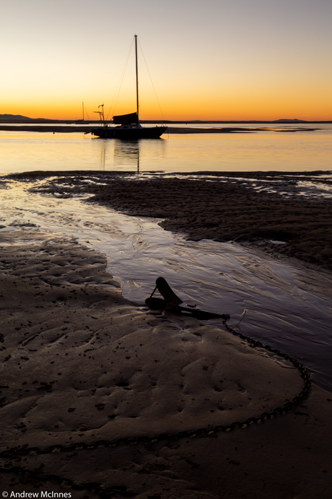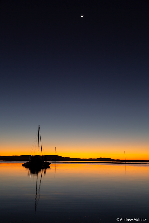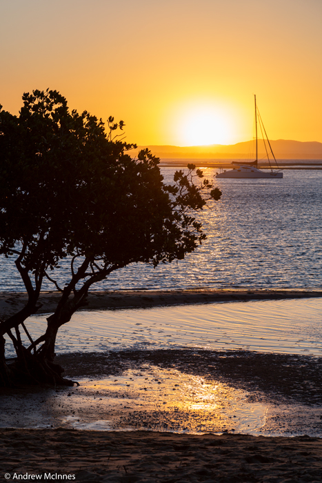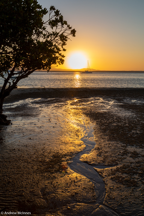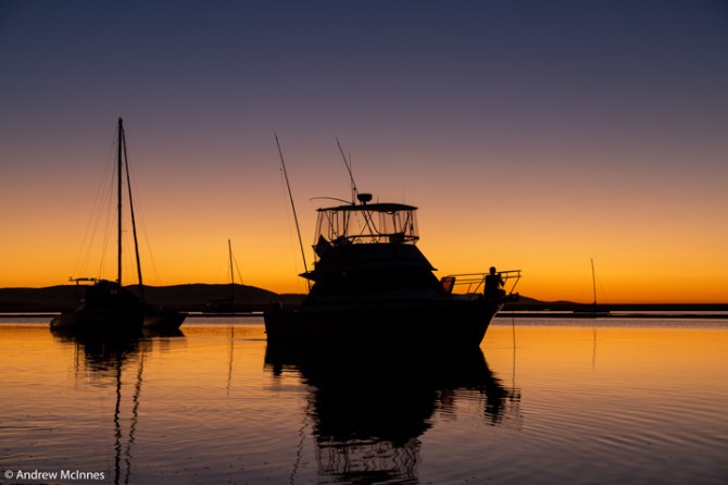 Boats at rest during a tranquil sunset on Round Hill Creek – the Town of 1770, Queensland.