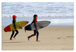 Morning surfers and a tumultuous dawn over Norries Head at Cabarita Beach, NSW.